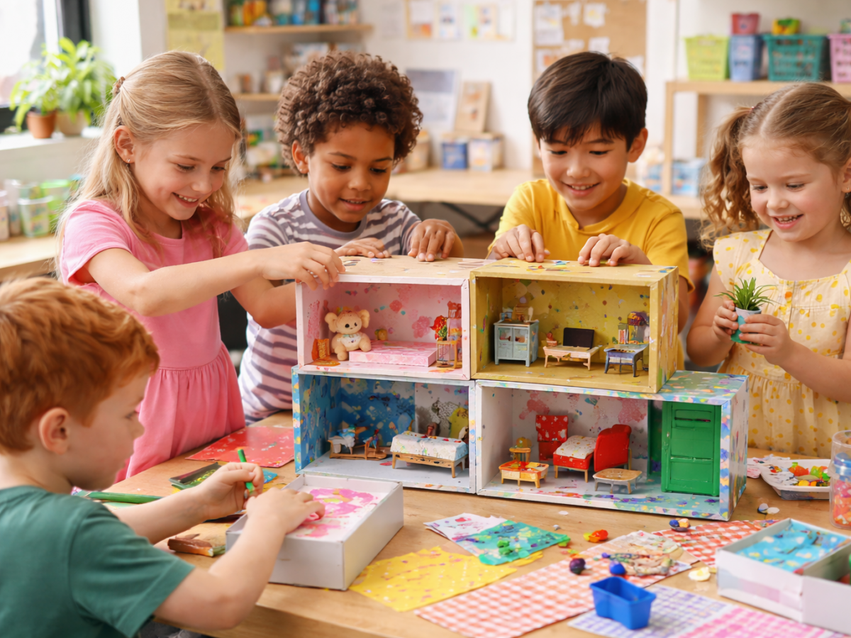 Samen met de kindjes maken we ons eigen poppenhuis met schoendozen en loose parts!