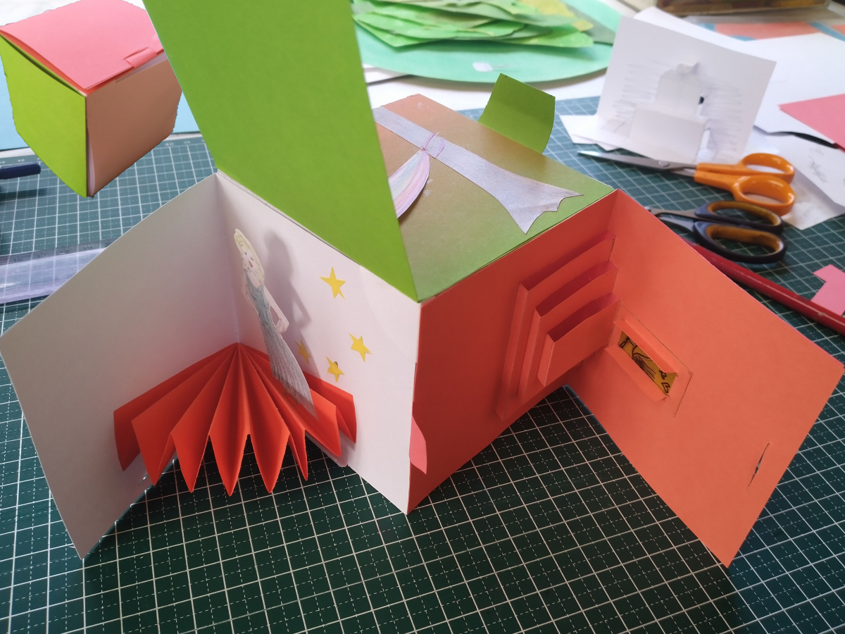 Eerst knutselen we een stevige kubus. Dat is de basis. Daarna komt het geheimzinnige deel. Dan gaan we voor elke zijde een dubbele laag verzinnen. Dat kan een tekening zijn, een collage, een tekst, een pop-up, … En net als bij een echt dagboek zorgen we er ook voor dat ze niet direct voor iedereen zichtbaar zijn.