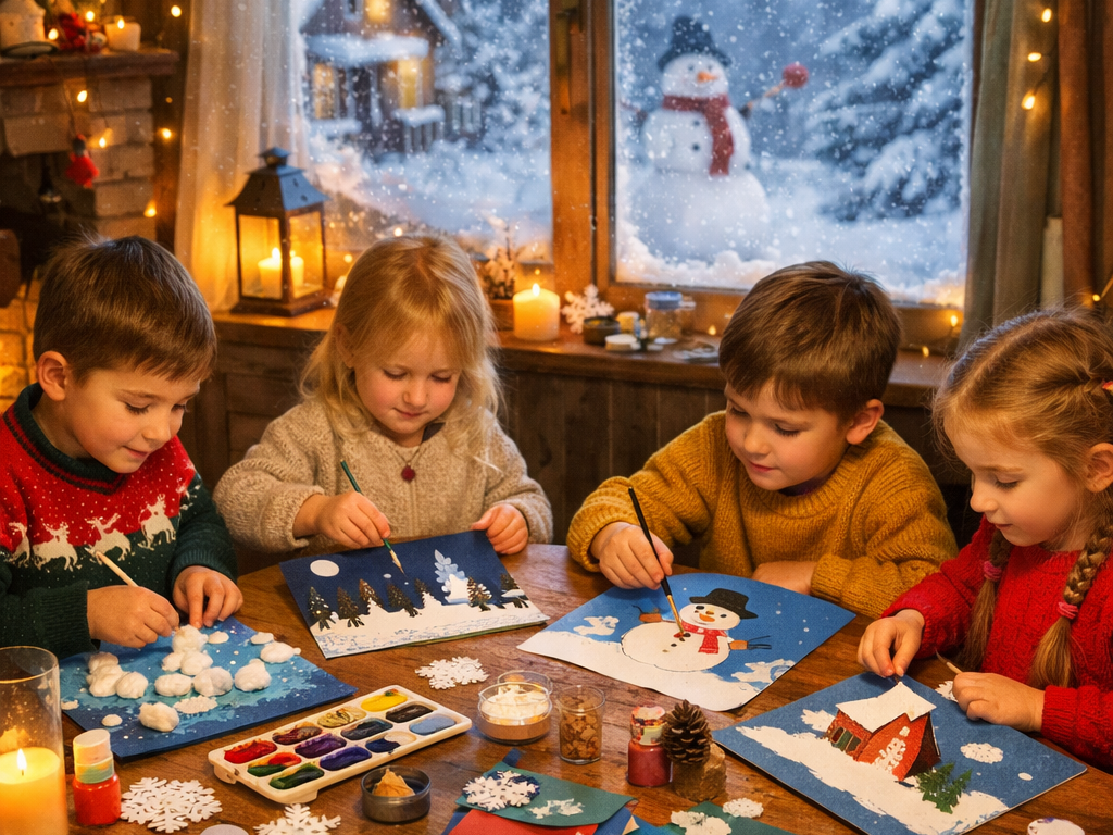 Brrr... het is koud buiten. Maar binnen wordt het gezellig warm in ons creatief winteratelier. We knutselen, schilderen en ontwerpen onze eigen winterkunstwerken.