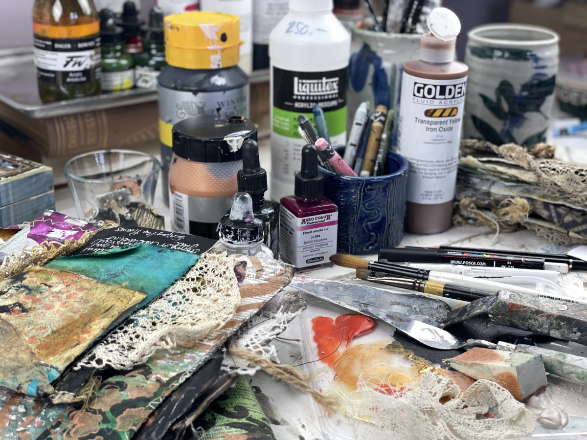 We gaan aan de slag met verf, inkt, papier, stof, houtskool, collage en nog veel meer. Je leert hoe je lagen kunt opbouwen, texturen kunt maken en hoe je materialen op verrassende manieren kunt gebruiken.