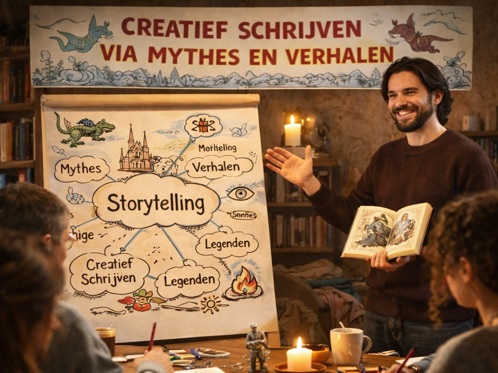 Heb je kriebels in de vingers om tot expressie te komen via schrift, raak je geboeid door de soevereine koningin, de boze stiefmoeder, reuzen en bosgeesten en talloze andere archetypen?