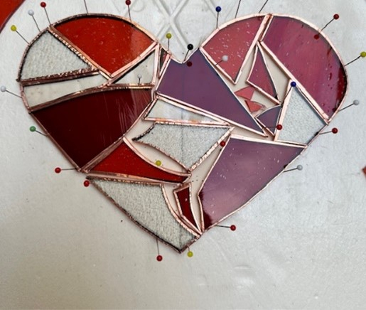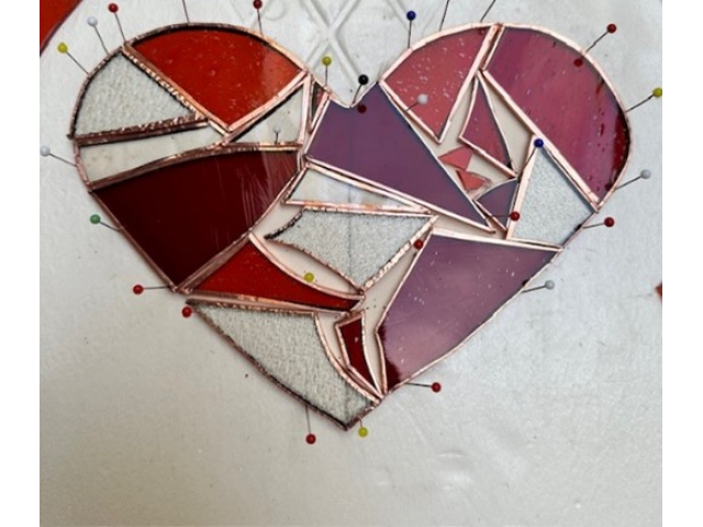 Geen Valentijn? Niet getreurd Dan hou je hem gewoon lekker voor jezelf! :) Gedurende 4 uur gaan we samen aan de slag met glas, koperfolie, lood, soldeerbouten en slijpmachines. Ik dompel jullie onder in de wondere wereld van pleisters en plezier. We vertrekken samen van éénzelfde ontwerp en je geeft je eigen toets en persoonlijkheid aan het werk. Je werkt je creatie zelf uit, onder enthousiaste begeleiding, met handige tips en trics. Tijdens het werken worden ook alle veiligheidsmaatregelen in acht genomen. Handschoenen en veiligheidsbrillen zijn steeds aanwezig. Er is tevens geen voorkennis vereist, handigheid en geduld zijn zeker een troef! Deelnemen aan de workshop is op eigen verantwoordelijkheid! Fun verzekerd!